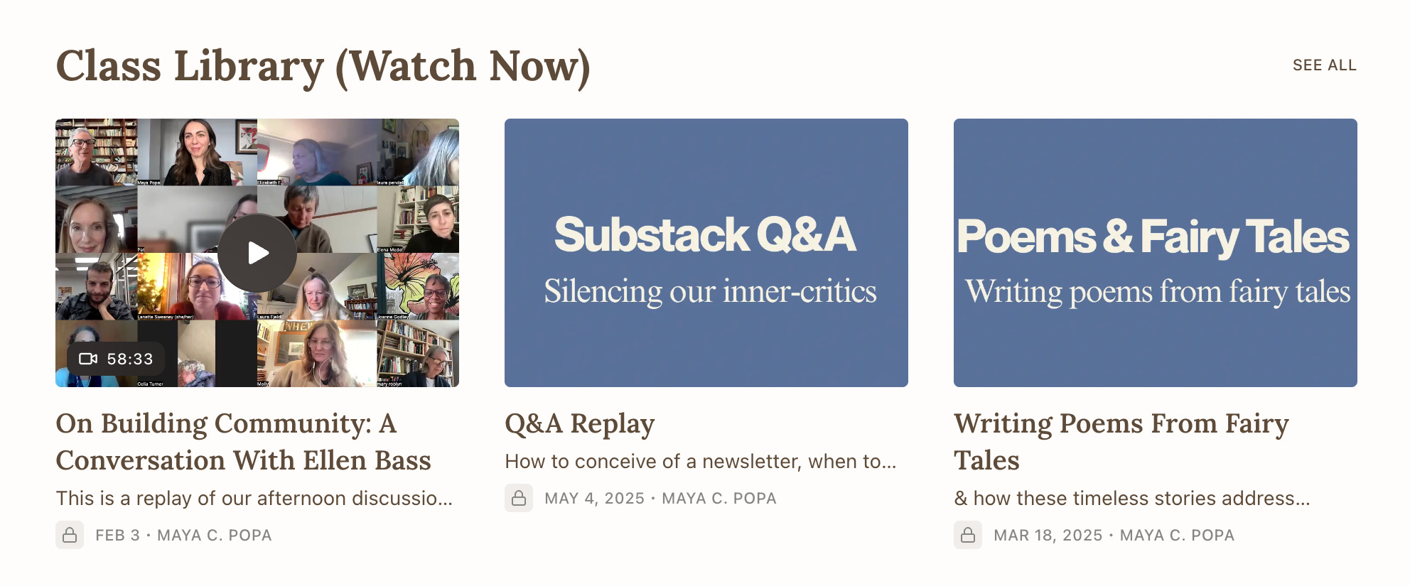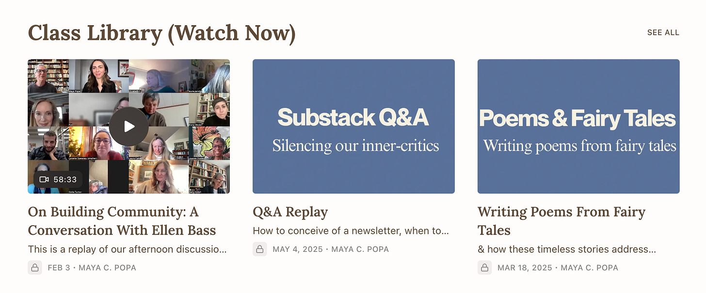 ✨ This National Poetry Month, please consider upgrading your subscription at a discounted $50 per year. Receive access to 14+ hours of replays in the Class Library & the archive of past essays & poetry curations. ✨